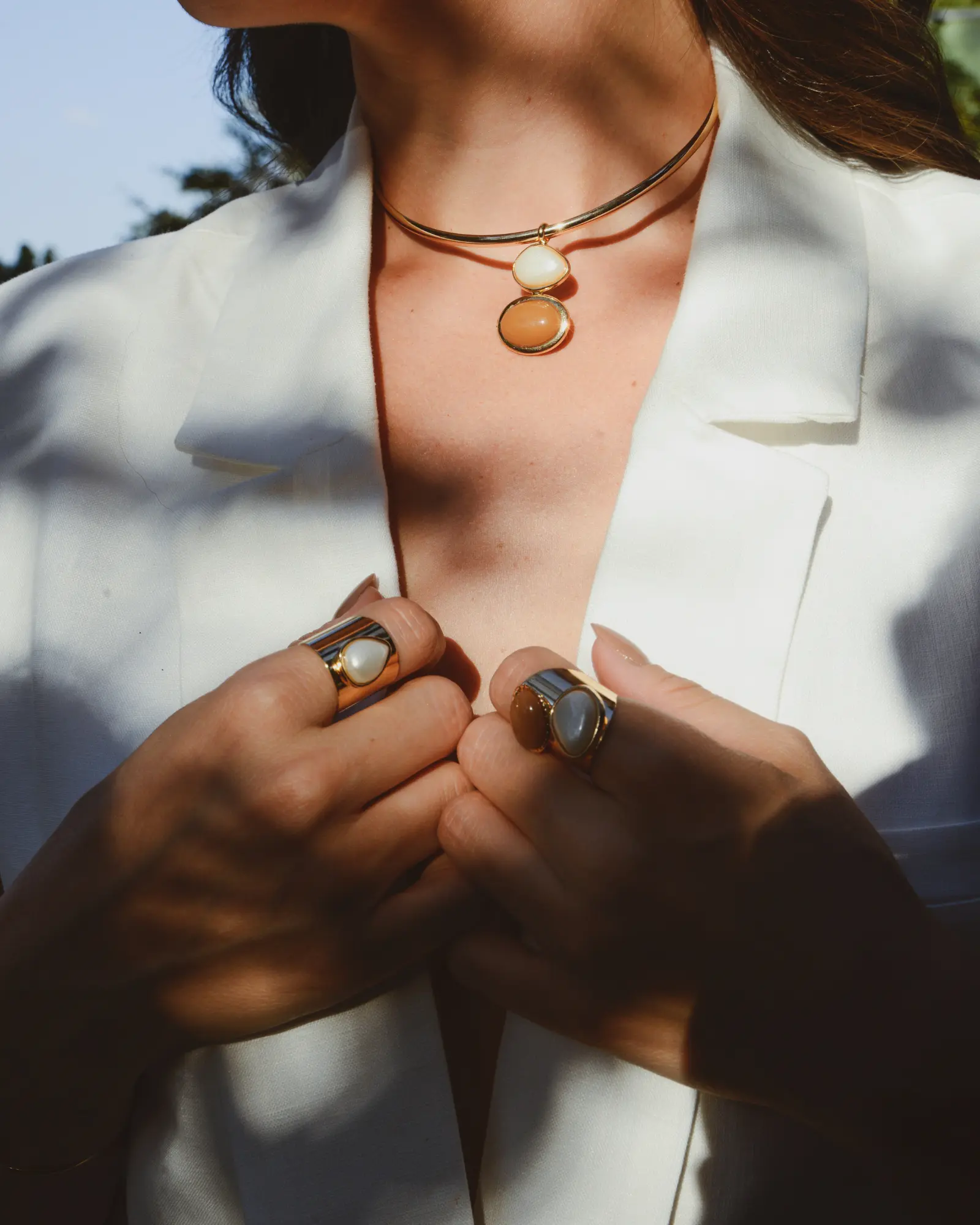 Criada manualmente em pequenas produções, esta joia carrega o olhar autoral da marca, unindo design contemporâneo e essência artesanal.