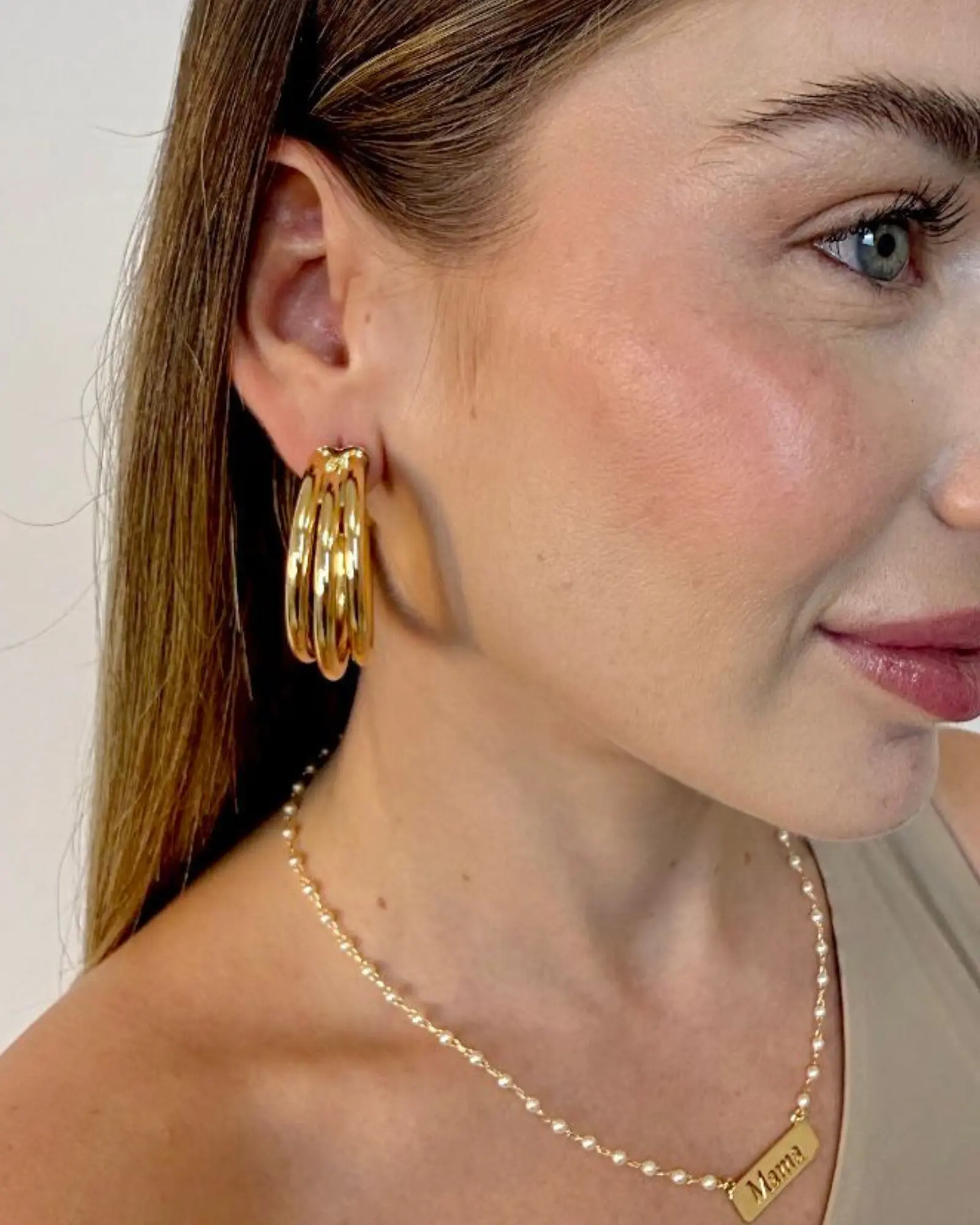 Brinco Argola 3 Aros Banhado a Ouro 18k