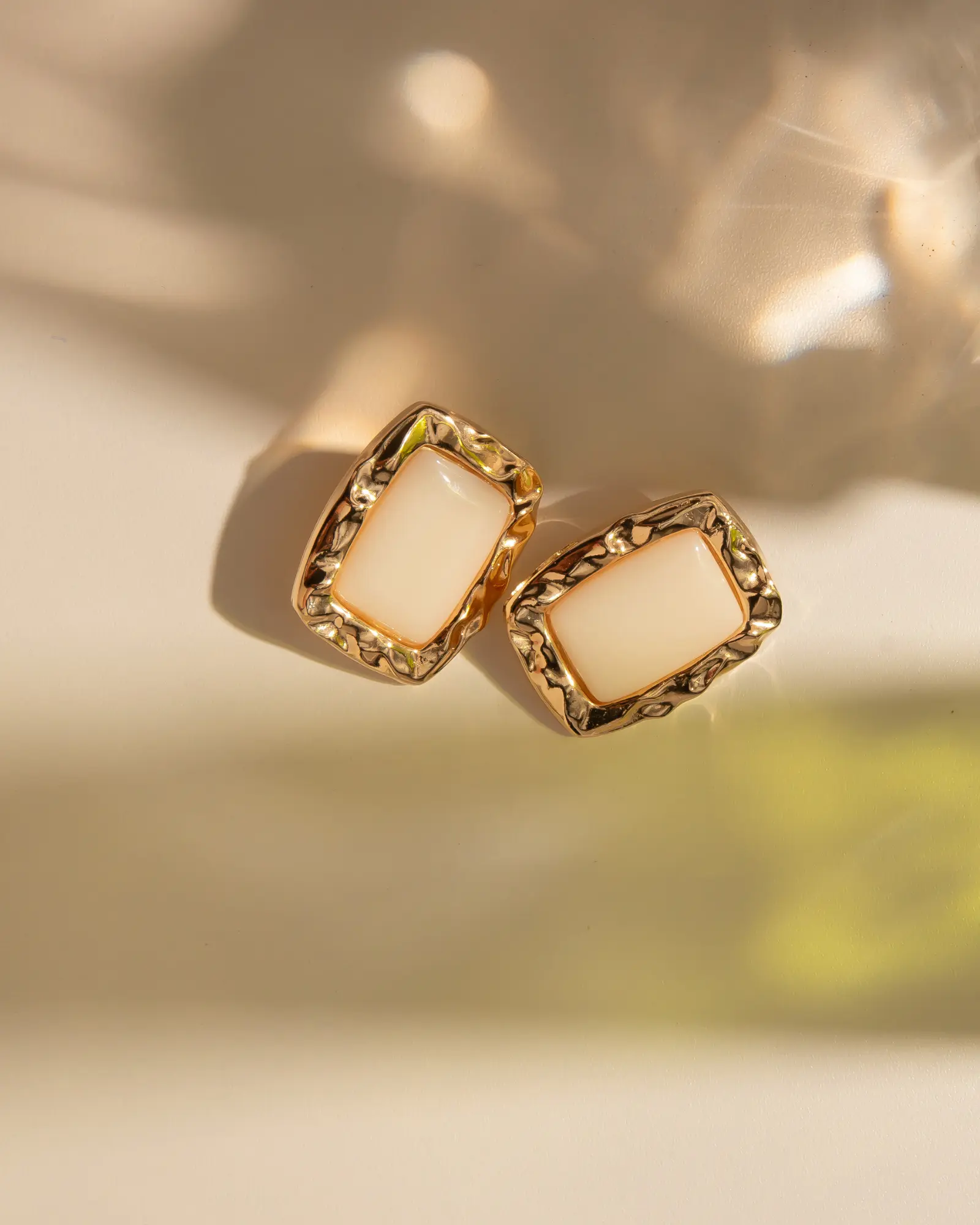Brinco Chapa Retangular Trabalhada + Pedra Resinada
