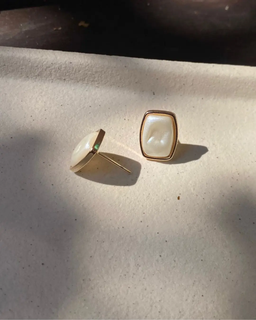 Brinco Fixo Retangular com Pedra Resinada