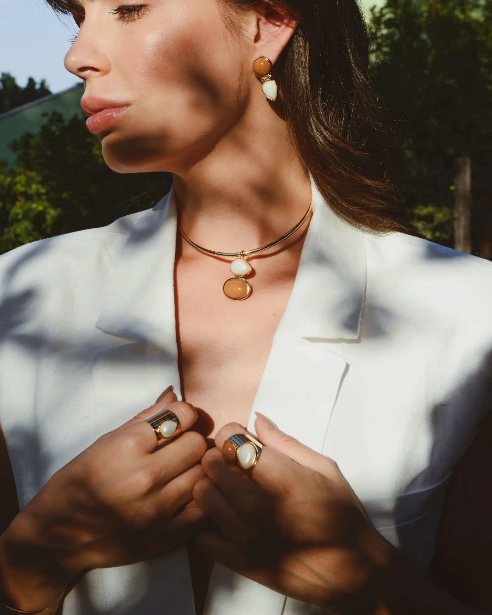 Criada manualmente em pequenas produções, esta joia carrega o olhar autoral da marca, unindo design contemporâneo e essência artesanal.