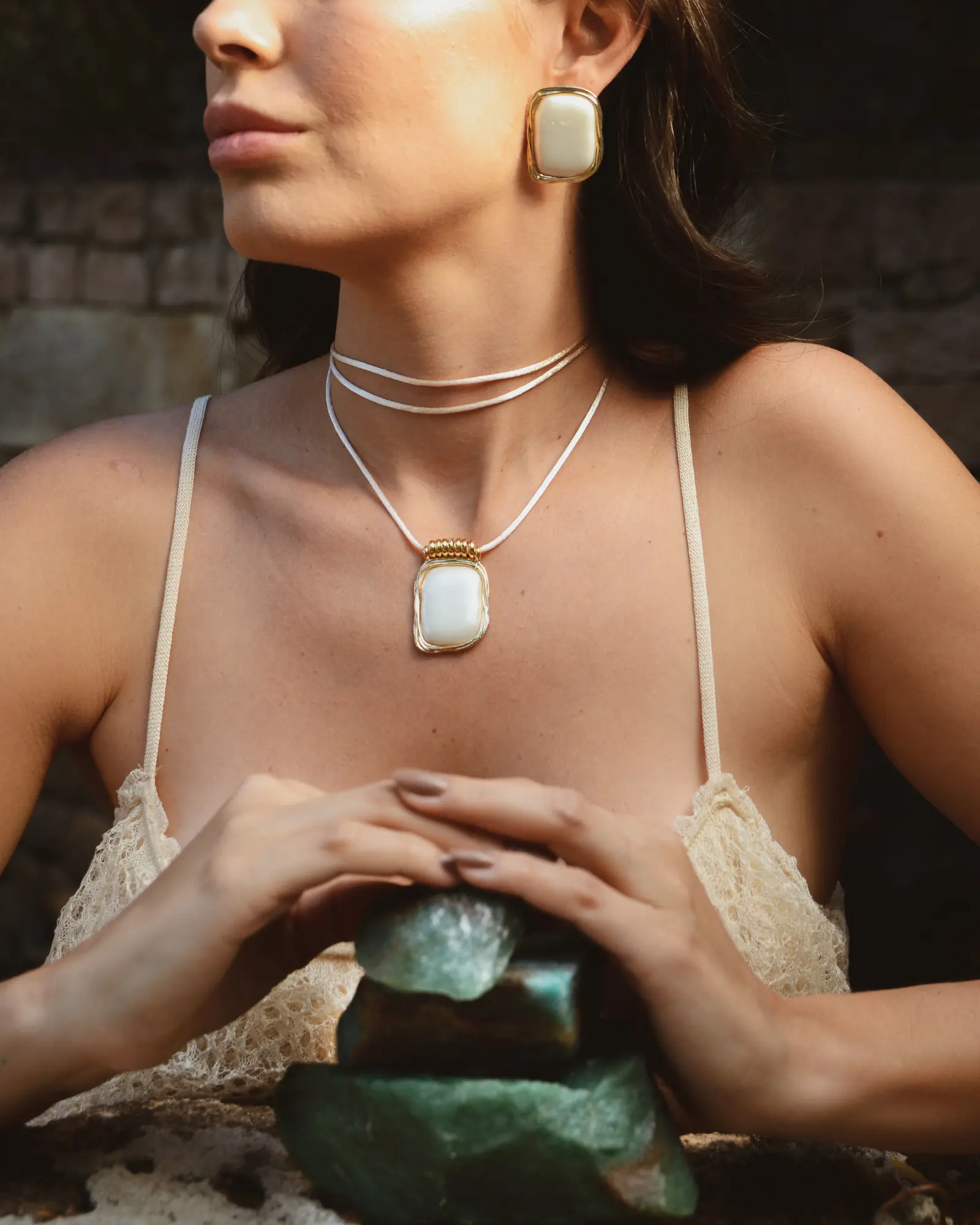 Colar Com Fio De Seda e Pingente De Pedra Resinada GG