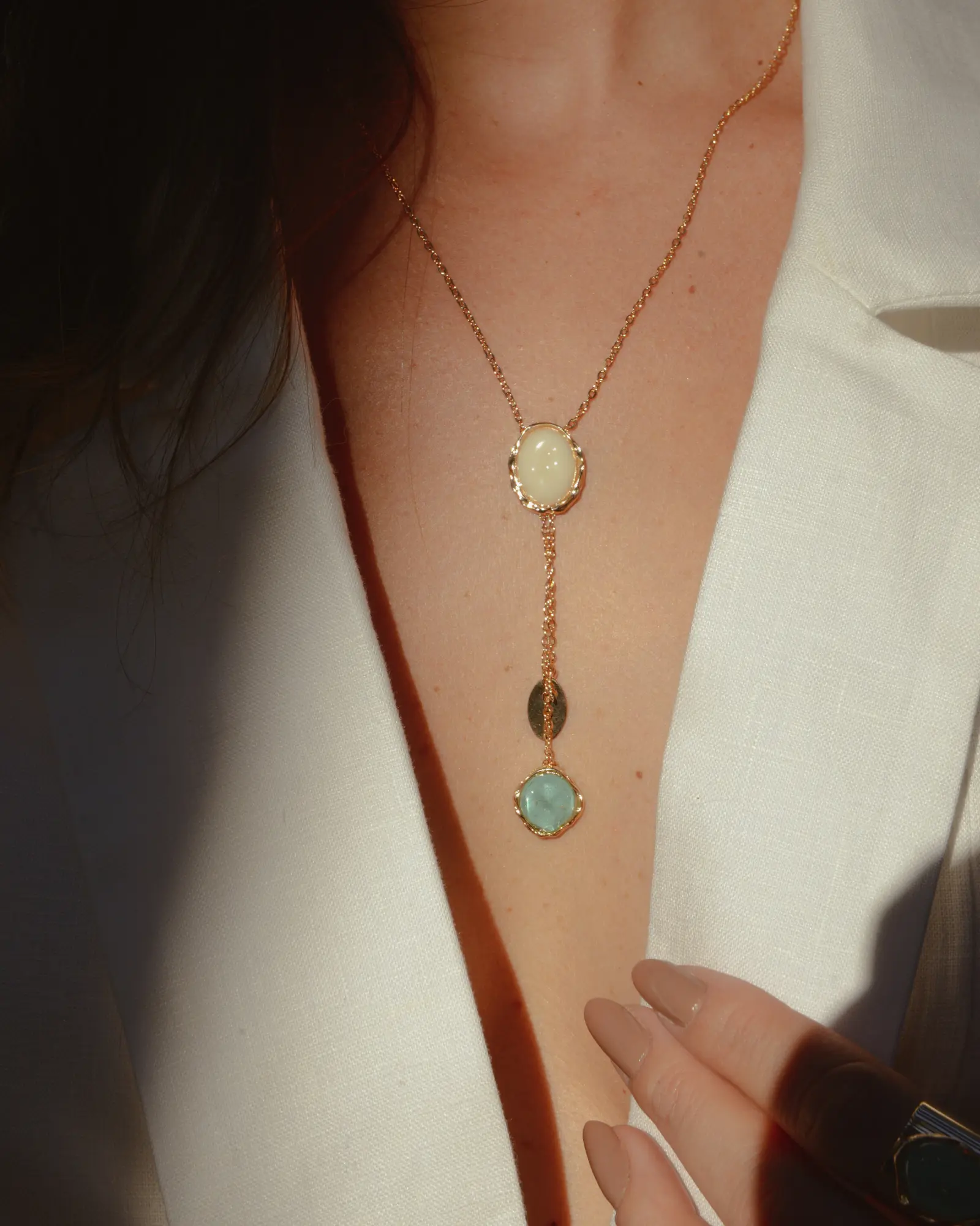 Colar Gravata com Pedra Resinada e Medalhinha