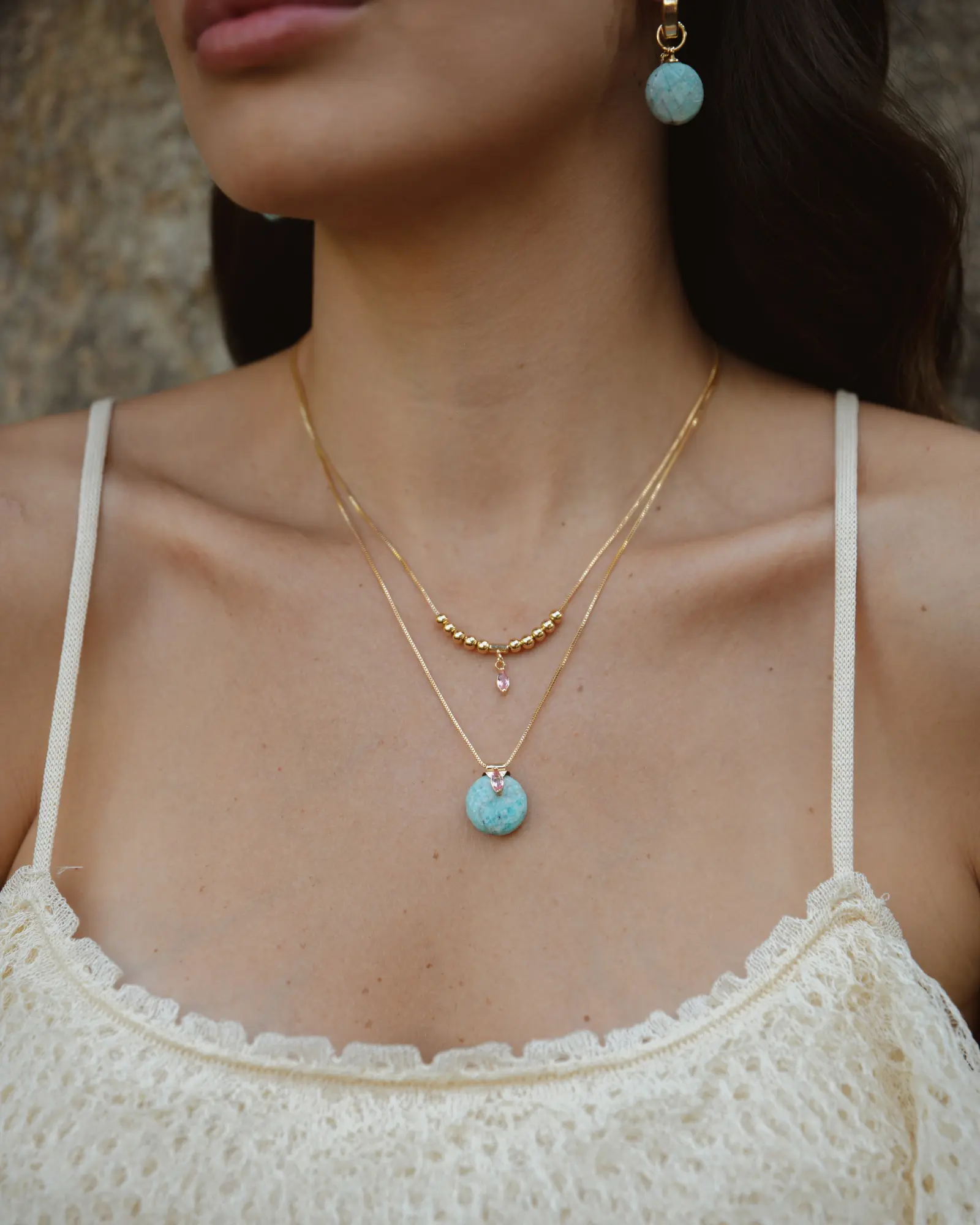 Colar Veneziana Duplo Com Pedra Natural e Pedra Navete